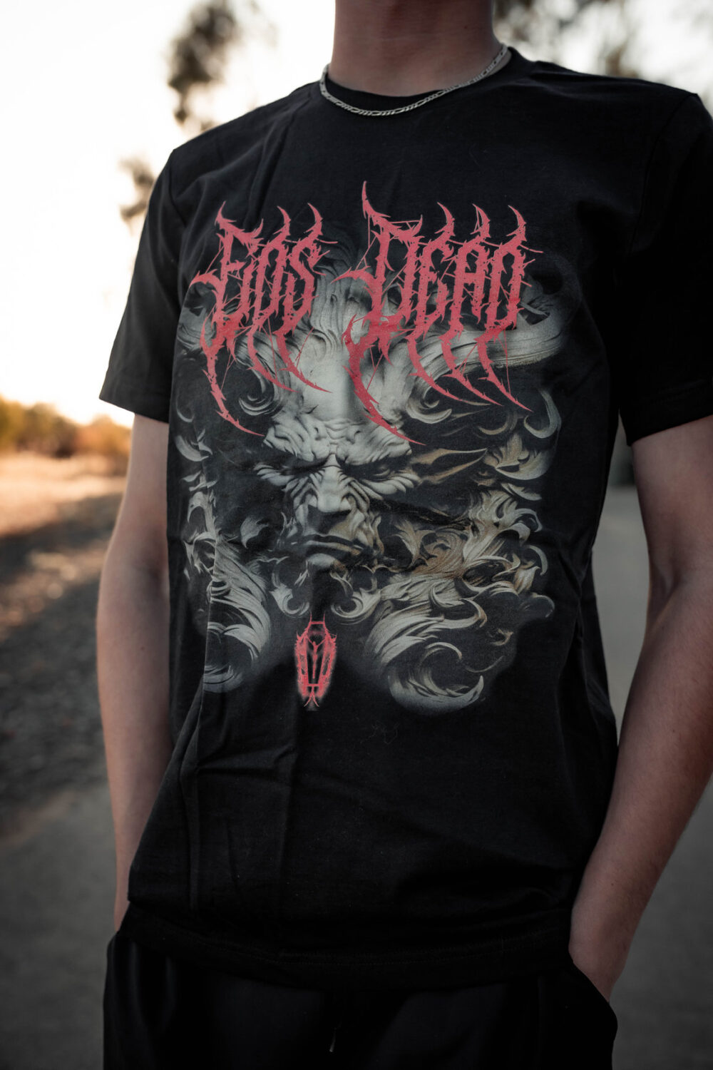 Black Unisex T-Shirt with “Sinister Gaze” design by Eddie Black.